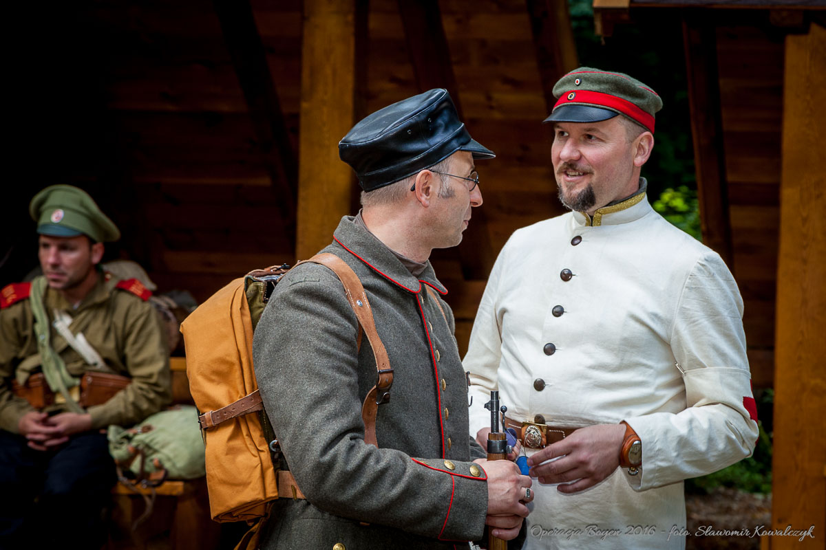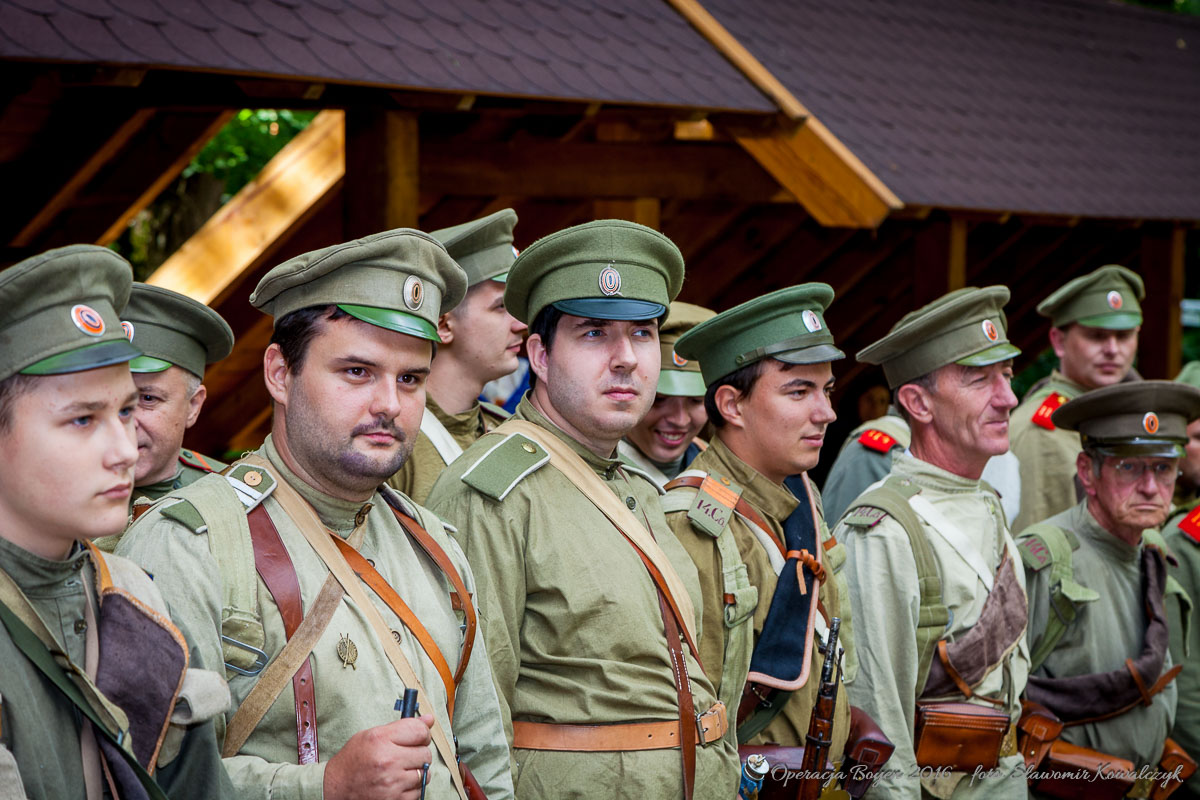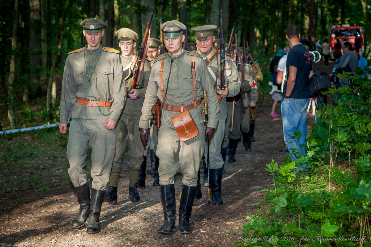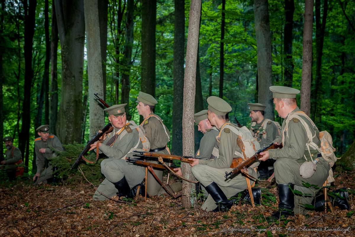 Inscenizacja walk z sierpnia 1914 roku w Lesie Miejskim w Gajewie koło Giżycka.